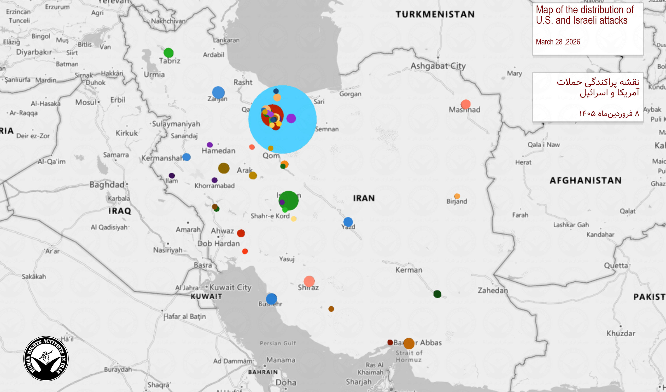 دادههای تجمیعی از آغاز درگیری ۹ اسفندماه تا زمان انتشار این گزارش – بر اساس رویدادهای ثبتشده و با در نظر گرفتن مقادیر حداقلی برای ارقامی که با «بیش از» مشخص شدهاند: